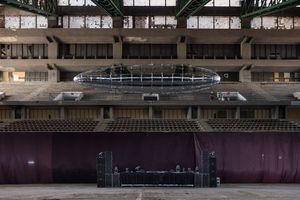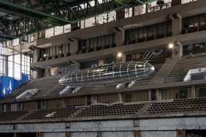 As it hovers between the soaring roof of Prishtina’s Palace of Youth and Sports – an icon of Yugoslavian socialist architecture – and the earthbound cars parked in the burnt-out sports arena below, Lee Bul’s silver balloon invites us to reflect on what we might salvage from the dreams of the past and what that might bring for the future.