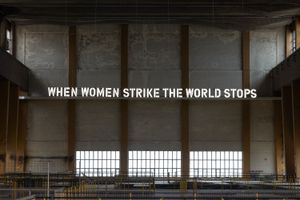 When women strike the world stops , 2020 © Claire Fontaine, Vegap, Barcelona 2024. Photo © Manifesta 15 Barcelona Metropolitana / Ivan Erofeev.