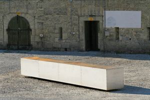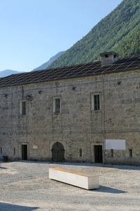 Timo Kahlen’s acoustic interventions aim at filling a specific site with complex, artificial or descriptive sounds that are a brought across via a certain object. His installations are mostly based on a scientific reflection of sounds and nature. For his project in Fortezza / Franzensfeste Timo Kahlen opts to address the visitors when they make their very first steps into the courtyard of the Fortress. The sound sculpture SWARM emits an altered, abstracted, recomposed sound of bees, encased within a metal construction. Humming calmly, then becoming distorted, slightly agitated, progressively more aggressive, the installation creates acoustic chaos and even a perceptible vibration from inside the encasement, before returning to a softly buzzing hum. The military function of the fortress is mirrored in the construction of the sculpture. Its shape is defensive, armored with riveted sheets of steel, evoking the form of an object of warfare. Its potential for aggression and its aura of alertness reflects the color and consistency of the granite stone and monochrome roof tiles of the fortress. It becomes integrated into the site. During the exhibition, rust will gradually change the metal surface of Kahlen’s sound object.